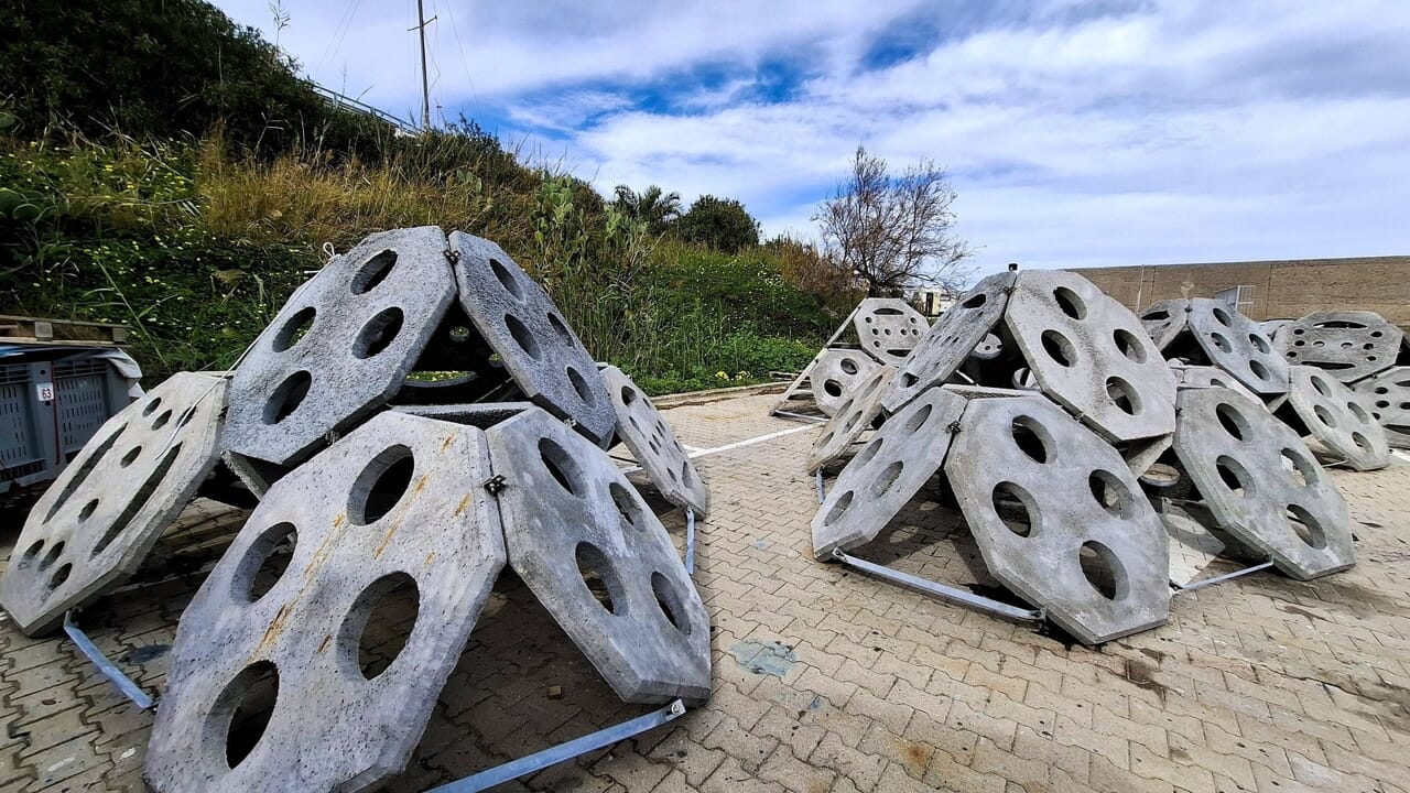 Al porto di Presidiana sono state montate le strutture in calcestruzzo sea-friendly (moduli Tecnoreef) del progetto Poseidone del Comune di Cefalù, che verranno posizionate sott’acqua tra poche settimane. Il progetto Poseidone è un progetto di ripopolamento ittico che ha lo scopo di preservare e sviluppare la fauna e la flora acquatiche autoctone, proteggere e ripristinare la biodiversità e gli ecosistemi marini tramite sistemi ripopolanti ecocompatibili, ovvero attraverso l’immersione di moduli ecosostenibili e certificati, da ubicarsi nella zona antistante capo Santa Lucia, che consistono in “unit reef” (unità produttive o barriere artificiali marine) di forma piramidale in calcestruzzo sea friendly (ecologico non impattante) a base di elementi naturali e senza additivi chimici.