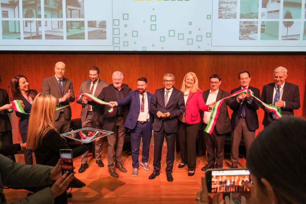 Presenti sul palco al momento del taglio del nastro: Roberta Gaggioli, direttore di Assites; Davide Lenarduzzi, amministratore delegato Promoberg; Mattia Angelo Montagnoli, direttore generale di PILE; Fabio Gasparini, presidente Assites; Paolo Franco, Assessore alla Casa e Housing Sociale di Regione Lombardia; Mohamed Lakhal, Console generale del Regno del Marocco in Milano; Carla Tomasi, presidente FINCO; Marco Rossi, presidente ANFIT; Maurizio Forte, Direttore Centrale Per i Settori dell’Export di ICE; Mohamed Karim Sbai, Presidente dell’Ordine degli Ingegneri di Casablanca – Marocco.