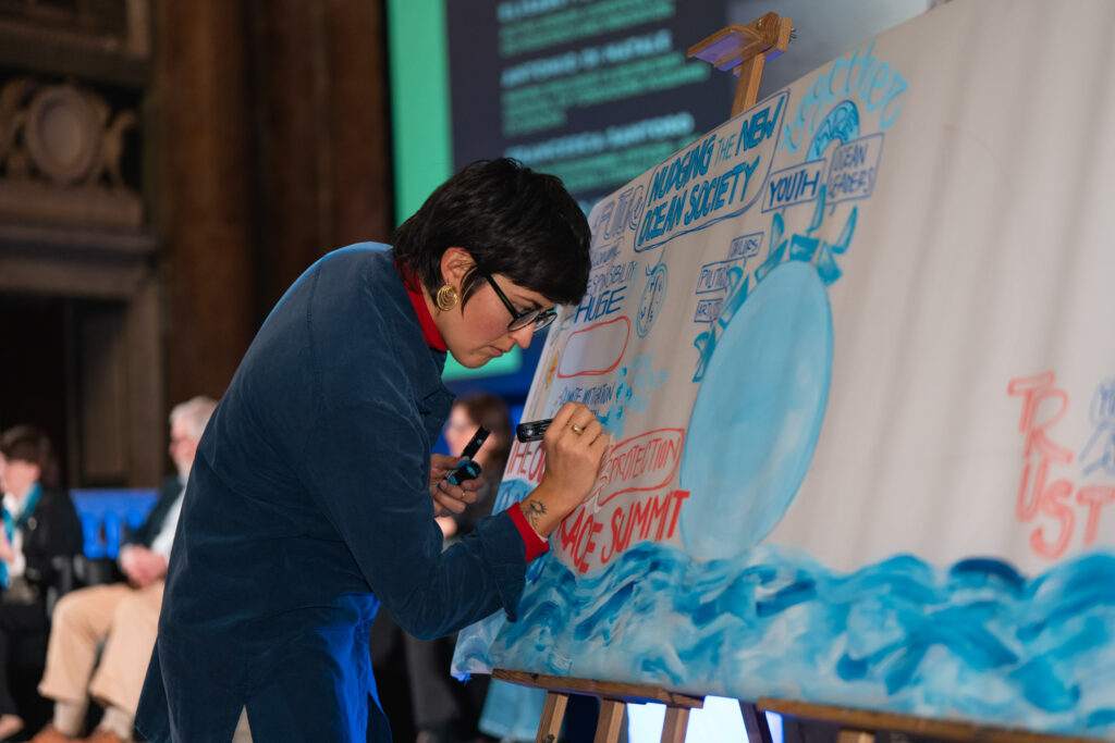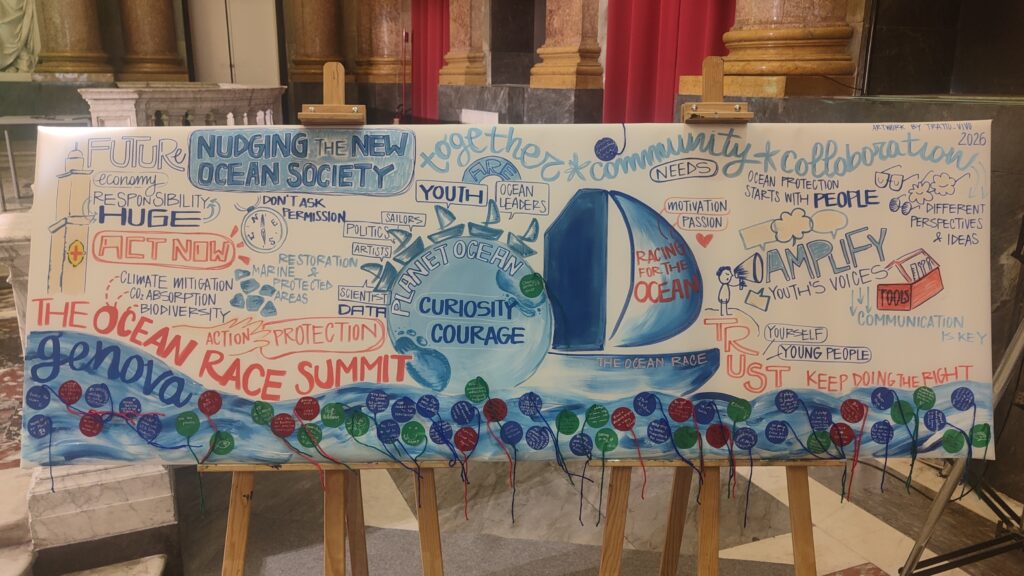 Il suo messaggio ha risuonato fortemente tra i giovani presenti, rafforzando l’idea che la protezione dell’oceano sia sia un movimento scientifico sia sociale, catturato visivamente dall’artista dal vivo Alessandra Zaffiro (Tratto Vivo) su una vela recuperata che aveva navigato a Genova, trasformando le idee e gli impegni del Summit in un’opera collettiva.
