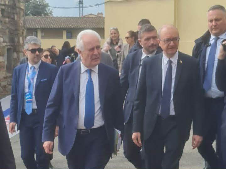 Il presidente della Regione Toscana, Eugenio Giani, e il Ministro dell’Istruzione e del Merito, Giuseppe Valditara, all’ingresso della fiera nazionale Didacta 2026