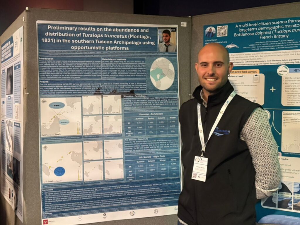 Come gruppo di ricerca, Magiamare Siena ha contribuito alla conferenza con il poster dal titolo: “Preliminary results on the abundance and distribution of Tursiops truncatus (Montagu, 1821) in the Southern Tuscan Archipelago using opportunistic platforms”.